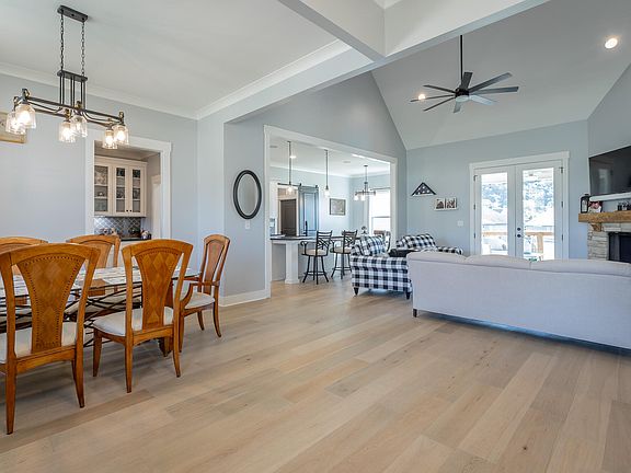 This open floor plan flows effortlessly from its living space, kitchen and both casual and formal dining areas.