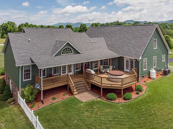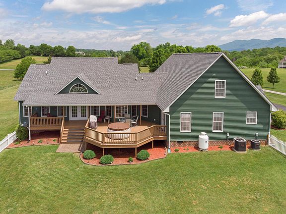 Take in the breathtaking Blue Ridge mountain views from this custom built 3 bedroom 2 1/2 bath home situated on 3.89 ac. This home offers split bedroom floor plan, open kitchen family room with vaulted ceilings, hickory cabinets quartz counter tops and hardwood floors, formal dining room, and large family room with office space. Full unfinished basement with interior exterior access could easily be finished to gain additional living space. The large covered deck is a great place to enjoy the mountain and pastoral views. Fenced garden area , fruit trees and well manicured lawn.