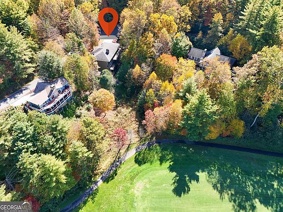 Nestled in the trees, this stunning, Sky Valley Golf Course Home is on the 10th Fairway. Featuring 4 large bedrooms, 4 Full Bathrooms, plus 2 half baths, 3 floors, 3 fireplaces, several decks, and a lovely flowing creek with a landscaped sitting area and a firepit out back. Each bedroom has a private full bathroom, large closets, and a beautiful view. The Great Room has a hand-chiseled rock fireplace, and wide Oak planked hardwood floors throughout the Main Level. The Kitchen features Stainless Steel Appliances, Gas Range, beautiful granite countertops, a Farmhouse Sink, Large Pantry and Laundry Room. Main Bedroom has a private entrance to the Back Deck, his & her Custom Closet System and tiled bath with full steam shower. The Upper Floor has 2 Large Bedrooms, a Vaulted Living Room with Built-In Office, a fireplace, another pantry with Washer & Dryer Hookups, half bath, private front balcony, and entrance to the back decks. The Lower Level has a large room and Unvented Gas Fireplace, designated Sitting Area, Game Room area, Office area, a large Storage closet, and a 21x28ft Workshop. Direct walk out to the landscaped yard overlooking the 10th Fairway of the Golf Course. Convenient, walking distance to all the amenities of Sky Valley Golf Club from the yard, yet private, being nestled behind trees and Mountain Laurels. Fully Paved with easy access and plenty of parking for guests. Covered front porch with landscaped yard, including a dry creek bed. With your paid membership to the Sky Valley Golf Club, you can enjoy golf, pickleball, croquet, pool, weight room, and fine dining, but Club Membership is not required to enjoy the views, walking trails, and park areas. Only 20 minutes to fine dining and shopping in Highlands, NC, and Clayton, GA.