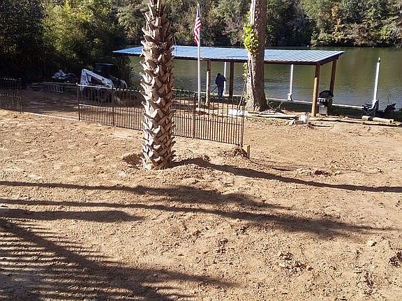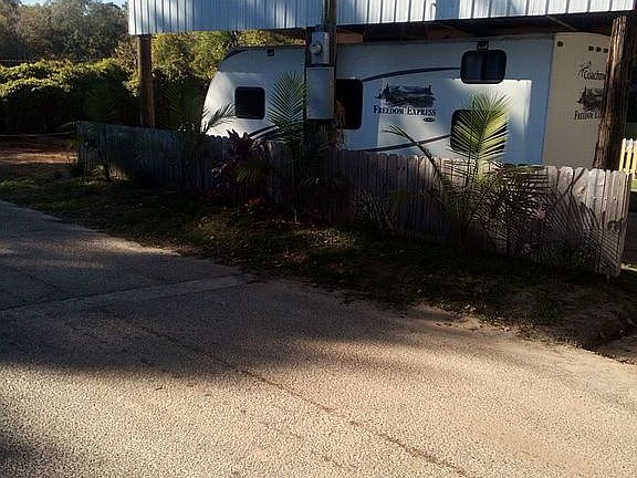 Over a half acre waterfront lot, with Coachman 23 ft camper. Has over 100 ft of waterfront with a dock. Has a pole barn over the camper, and a pole barn down at the water. Lot is landscaped with palm trees, orange trees, lemon trees, other fruit trees, grass sod, ornamental fencing. Has 2 retaining walls with steps. Excellent fishing, boating, recreation. Public boat landing is next door to this property. Very quiet , peaceful, mostly older and working folks live there. Has all hookups, with power, city water, and septic tank. Paved road , in the city limits of Columbia, Ala. A small town.