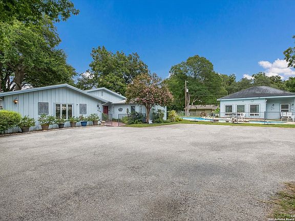 Huge Price Reduction for over 1 acre and 150 ft of Frontage of the Guadalupe, WOW! * This tranquil cul-de-sac home sits on 1.12 acres and boasts over 150 feet of Guadalupe River frontage. It features a single-story layout with a guest house, making it perfect for entertaining, with the pool centrally located. The main house includes three spacious bedrooms and three full bathrooms. There is a cozy family room with a fireplace, along with a main living room adjacent to the kitchen. Additionally, there are two bar areas. The primary bedroom offers a full view of the river, and every room in the house has a scenic view of the river in some capacity. The guest house includes a comfortable family room that can accommodate a sleeping area, as well as a full bedroom and bathroom. The inground pool is securely surrounded by a nice fence, and there is a peaceful deck area with a covered porch where you can enjoy the breeze and river views. The boat dock features a lovely deck area, perfect for outdoor meals. The entire property is beautifully landscaped and has been well-maintained, showcasing pride of ownership. 3 additional storage areas on the property.