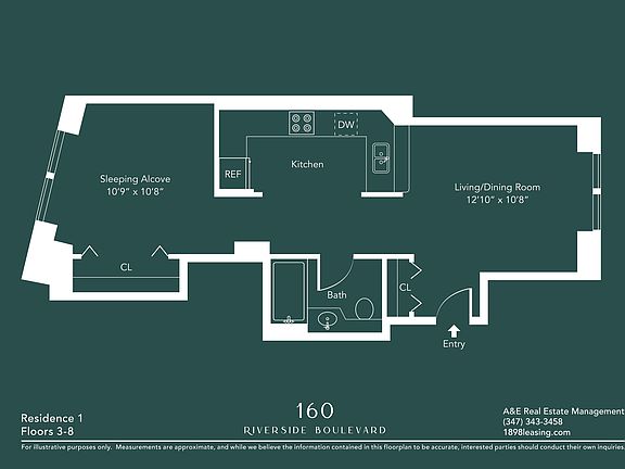 *Bright, top floor, south and north facing 1 Bedroom w/ Laundry on floor located in the heart of Lincoln Square's Iconic 160 Riverside Blvd.*