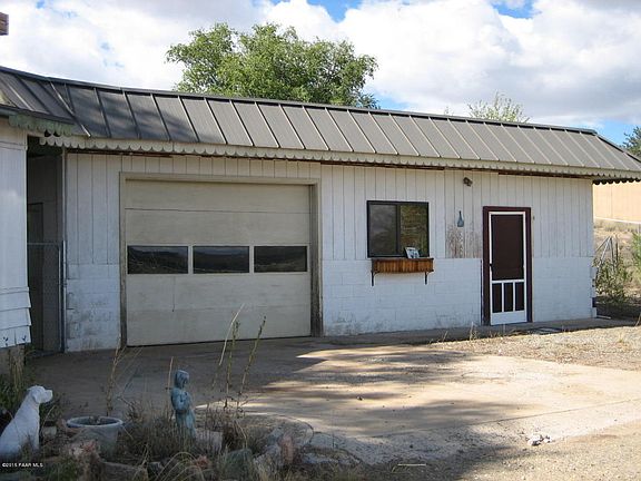 Location! Location!Off the beaten path w/panoramic views of Mingus. Garage w/office can be converted to a home w/good contractor. Good well. 3rd bedroom-no closet. Is on stem wall. Has been rental w/management for years, seller has not seen property. Use AS-IS agreement. $5000 in repairs completed but will need some TLC. Garage has shop and office attached. Lots of potential and possibilities. The 1.05 acre parcel is in Prescott Valley included in sale. Riding mower included in sale AS-IS. New cooler installed & roof repaired. Will discount for reasonable cash buyer .