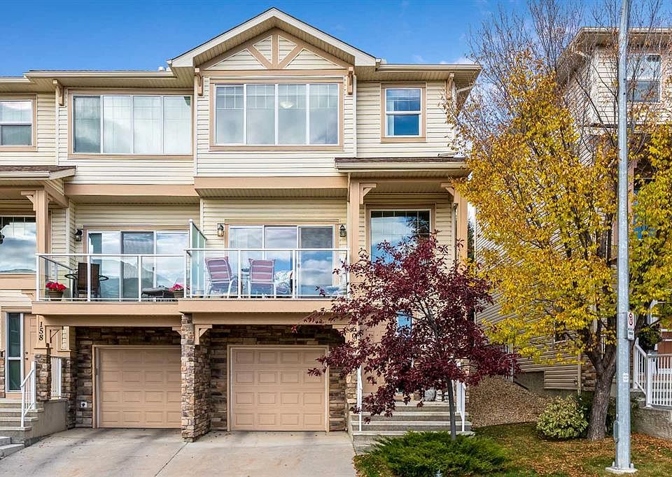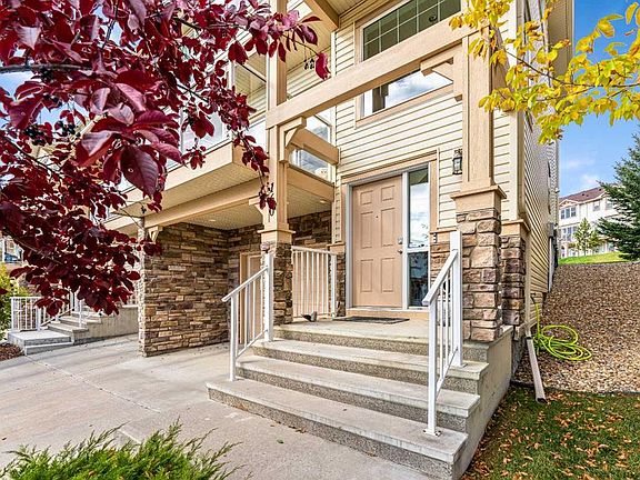 Welcome Home!!! This 1579 sq ft, Calbridge built townhome is nestled in the sought after community of Sunset Ridge with amazing views of the stunning valley covered with lush forests. When you step into this home you can tell it’s been well taken care of. We start with a large foyer to greet your guests, as you look above to a beautiful high vaulted, brightly lit ceiling. There is plenty of space to wipe your dogs paws with access to the attached garage. Up one flight and you have beautiful hardwood floors that flow throughout the entire main floor. A great open floor plan with a large kitchen and living room area. The kitchen has plenty of counter and cupboard space, a pantry, stainless steel appliances, and gorgeous granite countertops. From the kitchen/dining room you can step out onto the deck where you back onto a green space with no neighbours behind! Great place to BBQ! The living room has tons of space to host friends, a cozy fireplace, with large sliding glass windows which leads to an impressive front patio to take in the views of the valley as you have your morning coffee. The main floor is capped off with a tiled powder room. The upstairs has 3 bedrooms, the large master bedroom has a 3 piece ensuite, a walk in closet and large windows to take the views in. The laundry room is conveniently placed upstairs so you don't have to carry your clothes all the way downstairs. There is a 4 piece bathroom which finishes off the upper floor. The home has a great double attached tandem garage. The hot water tank was just recently replaced. Amazing walking paths to take the dogs out, and close to schools, shopping and is situated perfectly to get out of town, a 45 minute drive to Canmore/Banff. This place is perfect for a family, investor, or a first time home buyer! Don't miss out!!