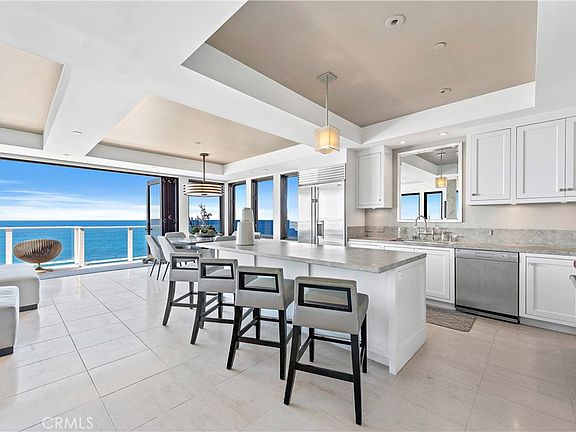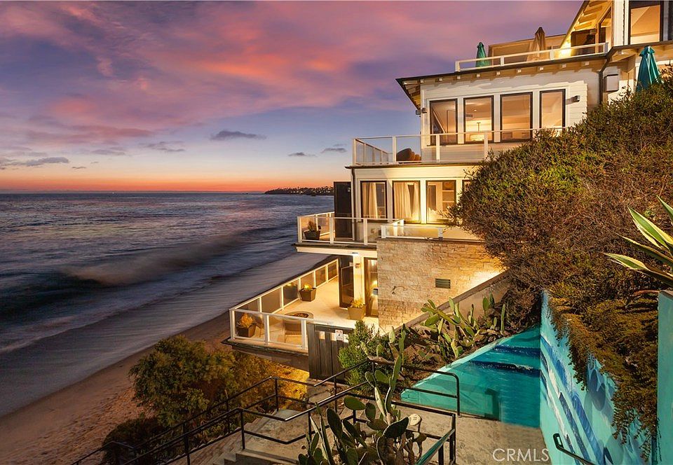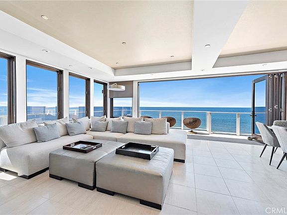 This magnificent oceanfront property designed by prestigious architect Paul McLean and masterfully built by Gallo Builders is truly one of Laguna Beach's finest! Nestled on a bluff overlooking the Pacific on one of Laguna's finest beaches, you will enjoy views of Catalina and yearly sunsets, walks on the beach and the best surf beach in town to learn . Each level's floor to ceiling walls of folding glass and mahogany doors open to beach front patios creating breathtaking indoor/outdoor spaces to enjoy sea breezes, the sparkling ocean, sunset and Catalina views. Limestone floors on every level and patio along with mahogany windows and doors create a soft contemporary design and remarkably comfortable living space. The property has a total of 4 luxurious units and all designer finished with 2 to 4 bedrooms), multiple deck levels ( 1-2 per unit) with bbq, al fresco dining and lounging areas, fireplaces (b, c & d), air conditioning and in unit laundry. Plenty of room for multi-generation extended family gatherings! An extremely unique amenity is parking . A subterranean garage has up to 8 parking spaces ( shared between 3 units a, b & c), upper garage has 2 spaces and there are 2 driveway spaces. The location of this trophy property provides access to absolutely ALL Laguna Beach has to offer. Enjoy walks along the water's edge or the close proximity to Laguna village means a short walk to restaurants, shops and art galleries. This luxurious property can never be duplicated . THE PROPERTY IS FULLY FURNISHED,RATE SHOWN IS FOR THE B & C UNIT OFF SEASON.