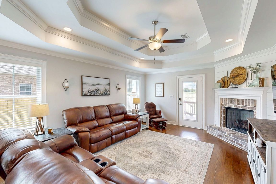 Come fall in love with this 4 bedroom, 3 full bath home with an upstairs bonus room or 5th bedroom in the Wicksburg school district! This is a custom-built Stone Martin Savannah Plan with TONS of upgrades! You will find upgraded wood floors, all quartz countertops, upgraded kitchen cabinetry, custom brick fireplace with shiplap accent wall, upgraded lighting package, and more!! Every detail of this home has been meticulously upgraded for luxury, convenience, and modern living! From the moment you step inside, you'll appreciate the inviting open-concept floor plan, abundance of natural light, and the amazing kitchen that serves as the centerpiece of the living space. You will find the primary bedroom plus 3 bedrooms downstairs with an extra-large bonus room and full bathroom upstairs that could be used as a 5th bedroom, office, game room, or in-law space. The kitchen is stunning and includes stainless-steel appliances, quartz countertops, and custom stained shaker cabinets (that aren't painted white!) The master bedroom will not disappoint either. It's spacious, has tons of natural light and trey ceilings. The bathroom has a custom tiled walk-in shower, large soaker tub, and huge walk-in closet. The laundry room has added cabinetry & shelving. Two car attached garage, covered deck out back, and almost half an acre of land with no rear neighbors. The yard is fully fenced. NO HOA!! C-Spire fiber internet. This beauty is just over 3 years old and better than new!!