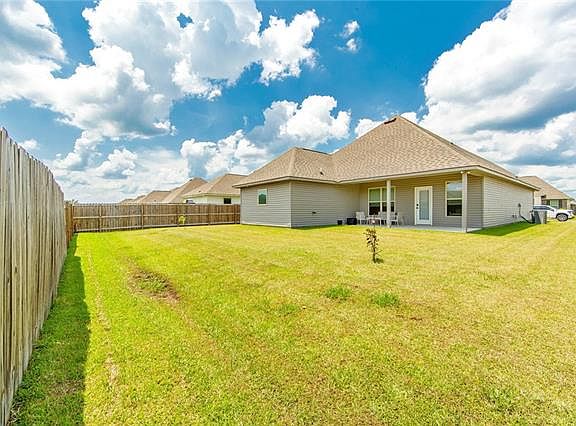 This charming 3-bedroom, 2-bath smart home, only 4 years young, is nestled in a vibrant, safe, family-friendly neighborhood. With a modern open floor plan, the home offers a sense of spaciousness and flow, enhanced by the warm tones of luxury vinyl flooring throughout, with carpet in the primary bedroom only. Natural light streams generously through large windows, filling every corner with a bright and inviting ambiance. The heart of the home is a spacious kitchen, beautifully designed with sleek Quartz counter-tops and top-of-the-line stainless steel appliances. Whether preparing meals or entertaining guests, this kitchen offers both style and functionality. Each bedroom is generously sized, providing ample room for comfort and relaxation. The master suite serves as a private retreat, complete with a luxurious en-suite bathroom. The master bath boasts a large walk-in shower, a his-and-her vanity, and a deep soaking tub, perfect for unwinding after a long day. Outside, the large backyard offers plenty of space for outdoor activities and is complemented by a covered back patio, ideal for entertaining. This smart home is equipped with the latest technology, allowing you to control the lighting, garage door, air conditioning, and security system remotely, ensuring convenience and peace of mind whether you're at home or on the go. Located in the highly desired flood zone C, and centrally located just over an hour to Baton Rouge and right at an hour to New Orleans.
