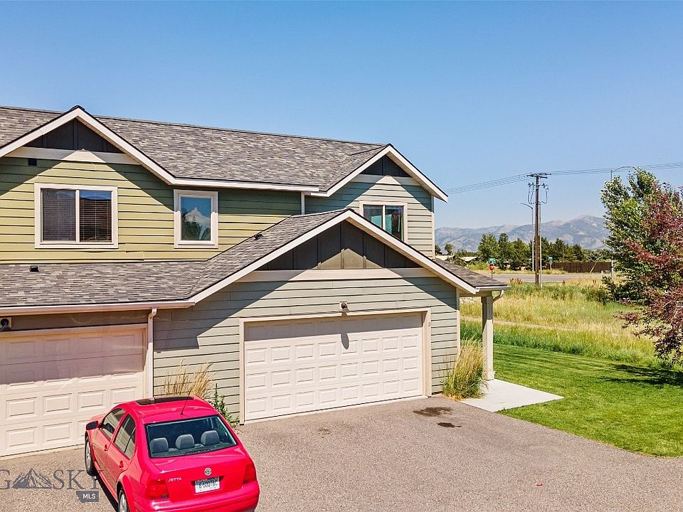 Spacious Bozeman area condo is packed with great features. As an end unit, this property enjoys additional east facing windows that fill the living space with natural light. New low maintenance LVP flooring on the main level makes the living space feel even bigger. New carpet upstairs makes this home move in ready. The main floor also has a primary suite with walk in closet and a 1/2 bath for guests. Combine these features with a fenced backyard, double attached garage and it is easy to see that this property checks a lot of boxes at an approachable price point. Don't miss the community trail right outside the front door and the unobstructed Bridger Mountain views from the main floor windows and back yard.