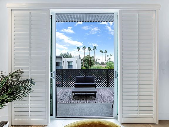 Newer construction & fully furnished! This 2 bedroom 2.5 bath condo is ready for a LONG TERM lease! 2 master bedrooms with walk-in closets and en suite baths plus a powder room. All stainless steel appliance, including full size washer & dryer. This is an upstairs unit with an open floor plan living area with an oversized kitchen island, 9' ceilings, exposed beams, 8' sliders, and clerestory windows. Custom wood shutters installed through out the home covering every window and slider. 64@The Riv is a GATED community features its own 60' pool/spa, with poolside fire feature and seating area, outdoor grills and dramatic mountain views. Environmentally conscious elements abound, including low-e glass, LED lighting, tankless water-heaters, and an electric car-charging station just steps from your front door. From the patio you will enjoy eastern and southern views of palm trees and the Santa Rosa mountains. Call now to schedule an appointment with 24 hour notice. Available September 1st. Long term lease only Furnished No pets No smoking One carport included Water, sewer, trash provided