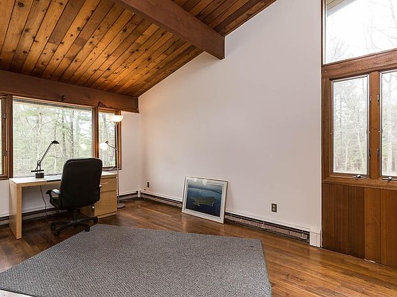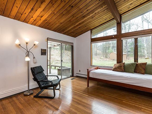 Escape to this private 3.37-acre retreat set up from a pretty country lane in the heart of Lincoln. Designed by notable Lincoln Modernist architect, Constantin Pertzoff (designer of Boston Modernist landmark, Holy Trinity Church), this post-and-beam Mid-Century-Modern home offers soaring ceilings, a flowing open floor plan, and abundant natural light spilling in from walls of windows, sliders and skylights. You can enjoy primarily one-level living, with the main floor divided between living spaces and a three-bedroom wing off of the nucleus center foyer. But there is the bonus above-grade family room and a full bath on the lower level, as well as lots of extra storage, laundry, and workshop spaces. Perfect for entertaining, the living spaces relate seamlessly to the outdoors, with a deck overlooking the huge grassy backyard. With the space, light, and architectural lines, investments in stylish cosmetic upgrades could make this property a design showcase & offers a great value.