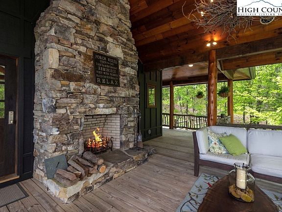 Mountain living in the small, gated community of Rocky Knob, where nature beckons you to just the right balance of nature and seclusion. Covered deck with outside hand-stacked stone fireplace. Custom stair railing with locust railing. Front doors custom made of red oak. Hickory flooring enhances custom design features, main level includes living room with stone fireplace, cedar posts. Custom built kitchen cabinets and island with black granite and limestone countertops and seating area. Laundry room/pantry, half-bath, primary bedroom with bath. The stair railing is rhododendron with copper railings. Upstairs has two bedrooms, full bath, and den. Upstairs vanity and mirror made with reclaimed barn wood. Workshop area in the basement. Fenced area and underground dog fence. Whole house 20-kilowatt Generac generator. Underground utilities include high-speed fiber-optic internet. The measure report shows 113 heated square feet less than the Watauga County Tax Office record. Perhaps the discrepancy could be explained by how the space occupied by the staircase was calculated and how some rooms with sloped ceilings were measured.