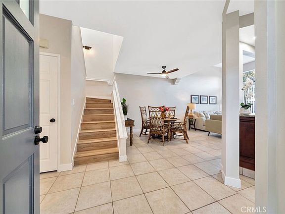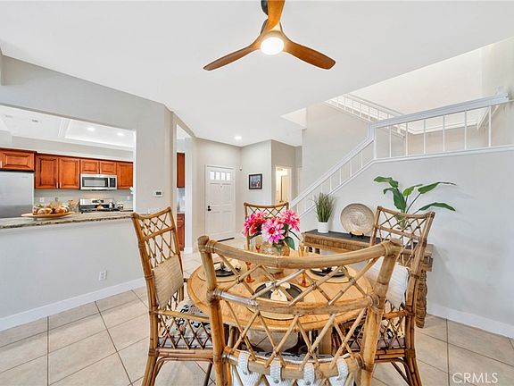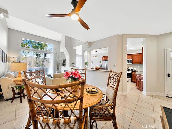 Welcome to your dream home! This beautiful two-story townhome is nestled in Rancho Santa Margarita; a vibrant community rated the safest city in California. 1,644 square foot layout with 3 spacious bedrooms and 2.5 updated bathrooms. Ideal, end of cul-de-sac location, with serene canyon views. The reimagined kitchen has been expanded and opened to adjoining living and dining rooms, enhancing a very comfortable living space. Features include granite counters, updated backsplash, stainless steel appliances (range and refrigerator are new), breakfast nook, and recessed lighting. The spacious dining and living rooms transition seamlessly and feature a cozy two-way fireplace (opposite side is in the breakfast nook). Two large sliding glass doors provide plenty of natural light, and open to a large back patio. The added outdoor space is perfect for larger gatherings (or just enjoying the environment). Upstairs: The large master suite features a sliding glass door (with canyon and sunrise views), balcony, and walk-in closet. The en-suite bathroom includes new garden tub with tile surround (and shampoo niche), new quartz counters, lighting, and plumbing fixtures. The hall bathroom has also been updated with new tub / shower surround, vanity, and plumbing fixtures. The 2nd and 3rd bedrooms provide ample room for queen beds and plenty of closet space. Hard surface flooring throughout, with tile downstairs and attractive luxury vinyl plank floors on the stairs and 2nd floor. In addition to the Candelero pool, your SAMLARC membership includes access to all the city-wide amenities, such as: multiple swimming pools, the Beach Club w/ sand bottom swimming lagoon, basketball, tennis, pickleball, and volleyball courts, clubhouse, parks, and fishing. Other local features: great schools, a skate park, dog park, miles of hiking & biking trails, and the Tijeras Creek golf course. Low property taxes (approximately 1.02%) Welcome to Rancho Santa Margarita, a great place to live!