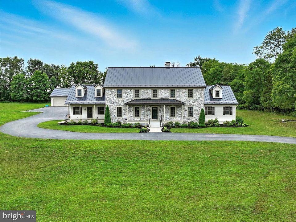 This exquisite colonial residence offers an unparalleled blend of luxury and comfort across 5,318 square feet. Set on a sprawling 3.32-acre lot, the property is enveloped by lush trees and woods, providing a tranquil retreat from the hustle and bustle of everyday life. Step inside to discover a meticulously designed interior that boasts six spacious bedrooms, the primary bedroom conveniently located on the main level. The heart of the home features an open floor plan that seamlessly connects the gourmet kitchen and family room, perfect for entertaining. The kitchen is a chef's dream, equipped with high-end stainless-steel appliances, including a six-burner stove, and an expansive island that invites culinary creativity. Rich hardwood and tile flooring flow throughout, complemented by exposed beams that add a touch of rustic charm. The double-sided stone fireplace, with glass doors, serves as a stunning focal point, creating a warm ambiance in both the family room and dining area. A formal dining room offers an elegant space for gatherings, while the breakfast area provides a cozy nook for casual meals. Additional highlights include a central vacuum system for effortless cleaning and a main-floor laundry for convenience. The partially finished basement offers endless possibilities for customization, whether as a recreation room or additional living space. With a four-car attached garage and a long driveway, parking is abundant. The detached garage is built primarily for larger vehicles which would be perfect for someone looking to run their business with the convenience of being at your own home. That includes an office that has its own separate keyed entrance. This property is not just a home; it's a lifestyle, offering the perfect blend of luxury, space, and natural beauty. Experience the tranquility and elegance that this exceptional residence has to offer.