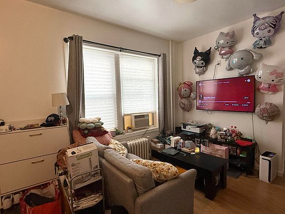 This cozy apartment is ideally located just a short walk from the Journal Square PATH station, making it perfect for commuters. Situated in an elevator building, the home features hardwood floors and an updated kitchen with a gas stove, microwave, and refrigerator. Heat and hot water are included, and residents have access to a shared laundry room within the building. This apartment is available for 11/1 move-in.