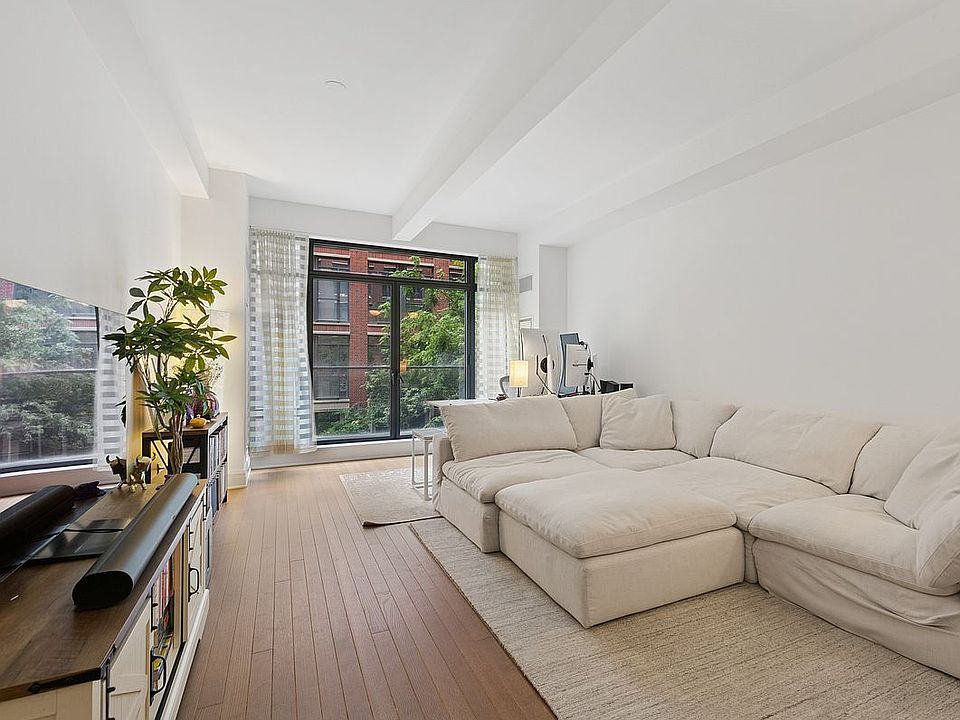 The Greenwich Lane. This gracious 1 BR, 1 Ba residence on West Twelfth Street offers southern exposure over the central garden through newly enlarged, double-hung mullioned windows. Beamed ceilings, hardwood floors, painted wood and stainless steel finishes invoke the highly crafted style of early modern industrial architecture. Unique painted steel entry doors and vertically paneled interior doors lead into a well-proportioned living room with large windows that offer views over the private garden and beautiful foundation, surrounded by flowers and greenery. The chefs kitchen is fully equipped with state-of-the art Sub-Zero, Wolf, and Miele appliances. A pale white marble countertop and marble tile backsplash add richness to the modernist character of the home. The master suite features a large walk-in-closet, and an elegant master bathroom with custom marble mosaic floors, under-mounted soaking tub with marble surround, glass-enclosed shower, and custom millwork vanity with marble slab countertop. Additional residence features include: custom light fixtures by Thomas O'Brien, generous closet space throughout, washer/dryer, and a four-pipe HVAC System with zoned climate control for maximum year-round flexibility.
