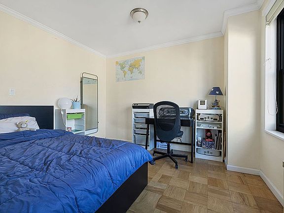 Welcome to this converted 2 bedrooms. AND IT HAS ITS OWN BALCONY!! Indoors and out, your view of the skyline north and your light and sun are plentiful. The generously sized bedroom fits a king-sized bed, night tables and dressers. The second bedroom size is comfortable as well or use as a home office. For closet lovers -- there's room aplenty. - this opportunity should not be missed!
