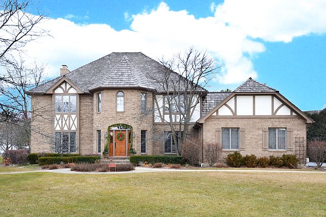 Beautiful brick tutor colonial in Onwentsia Gardens! This immaculately cared for house has 9- foot ceilings and hard wood floors thru out the first floor, beautiful open staircase leads to second floor and finished lower level. Large eat-in kitchen opens to family room with built ins, fireplace, wet bar and sliders that open to patio. First floor laundry and in-law suite! Spacious bedrooms sizes, large master bedroom with separate office and large master bath with his and her closets! Large corner lot with big patio, three car heated garage!