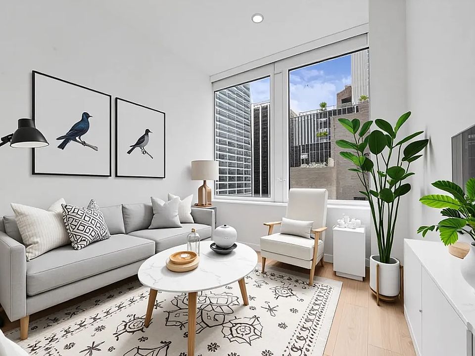 -Expansive 55"-wide windows draw in abundant daylight and city views.