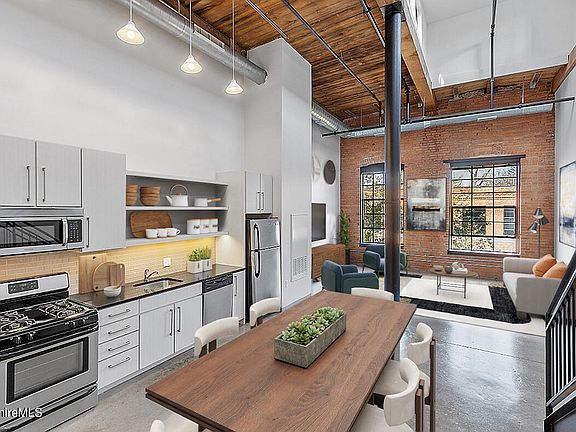 Cable Mills consists of three former industrial mill buildings restored into beautiful homes featuring 12ft to 16ft tall ceilings, massive windows, and exposed brick and beam, steel and timber throughout, stainless steel appliances, granite countertops, gas-fired ranges, generous closets and in home laundry. Cable Mills offers stunning views of the famed 'Purple Mountains' and the rolling Green River. Homes are one, two or three bedrooms in single level flats, lofts and townhome styles totaling 61 residences. Outdoor spaces including the Outdoor Living Room with a fire pit, grills and seating along the river walk. The main building offers a community lounge, fitness center, interior bike storage, package delivery room, dog wash and on-site professional management.
