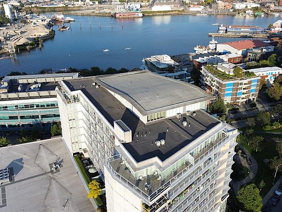 Locations like this don't come up often! Western Corner Penthouse unit in the Parc Residences is completely private, stunningly bright, quietly perched, and ever so conveniently located. With features often sought after, but rarely offered. 2 parking stalls (one with dedicated EV charger), dedicated heat pump, natural gas outlet on the massive wrap around deck. Views that have to be seen in person to truly appreciate: sunsets, ocean, panoramic city and mountain images you'll never tire of. Watch the planes take off and the cruise ships come in. Stay home for the fireworks! Host and entertain in near complete privacy. The Parc is well managed and proactive, plus located next to amenities galore. Groceries, restaurants, cafes, and pubs are all downstairs. Bike lanes and public dock means you can take the water path, bike path, or a quick 12 min walk to all downtown has to offer. Floor to (high) ceiling windows and a thoughtful layout with multiple living/work spaces. Come have a look!