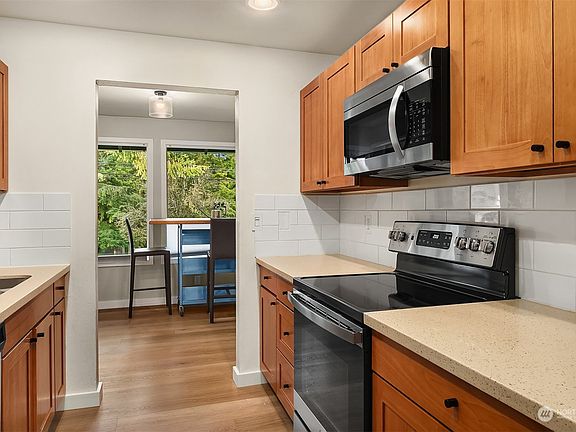 $5k CREDIT TO BUYER & Move-In Ready in the heart of Bellevue! This modern remodeled condo has space for everyone w/primary ensuite and second 3/4 bath. Relax on your private covered balcony minutes from freeways, Bellevue College & Microsoft. Recent updates include waterproof LVP & tile, granite counters, stainless steel appliances, fresh paint & carpet, tile shower surrounds & shaker cabinets. Spacious vaulted ceilings, wood burning fireplace & custom two-way blinds in living room. Separate in-unit laundry room w/storage, vinyl windows throughout, indoor/outdoor storage & smart thermostat in primary. 1 reserved parking and 2 addt'l unassigned. Entire complex painted 2023, seasonal outdoor pool, No Special Assessments & No Rental Cap!