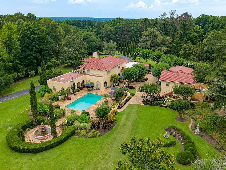 Welcome to an extraordinary opportunity to own one of the most unique and private estate compounds available - spanning approximately 60 full fenced and gates acres of meticulously maintained grounds, this remarkable property offers a lifestyle of luxury, comfort, and seclusion. At the heart of the estate lies the main residence, a stunning two-story home with over 5400 sq ft of elegantly appointed living space. Designed for both entertaining and everyday living, this home features multiple living and dining areas, custom finishes, and sweeping views of the manicured landscape. Step outside to enjoy a private pool, tennis courts, stone patios and driveways, and lush gardens adorned with fountains, vibrant paintings, and mature trees. A separate guest house, equally impressive, offers more than 3200 sq ft across two beautifully decorated levels. It mirrors the charm and luxury of the main home, complete with its own private patio area, landscaping, and tranquil ambiance.