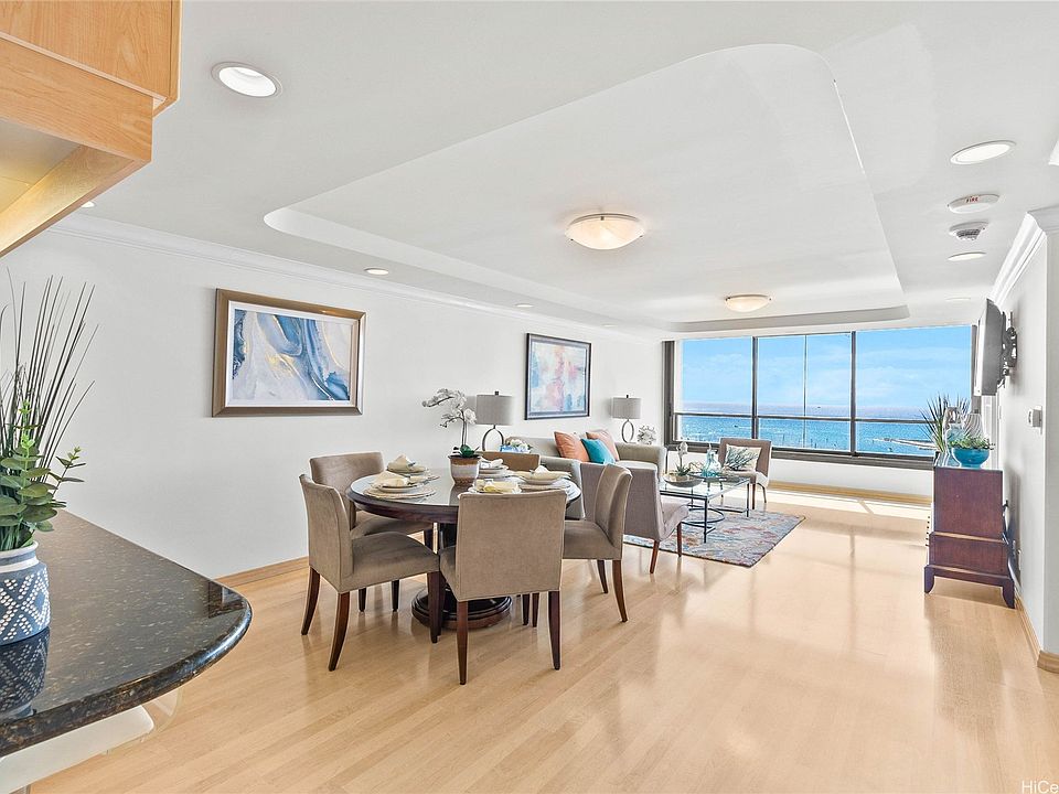 Exquisite 2-Bed, 2-Bath Condo with Unmatched Ocean & Sunset Views. Indulge in luxury with this beautifully updated and meticulously maintained 2-bed, 2-bath condo in the highly sought-after Ewa Tower. The breathtaking panoramic views of the sparkling ocean, coastline, harbor and stunning sunsets are yours to enjoy every day from your own home. Inside, the home boasts elegant crown molding and an open, inviting layout that’s bathed in natural light. The spa-like bathrooms include luxurious travertine finish. The kitchen features an efficient layout with a gas range, wall oven and ample cabinet space. Located in a prime spot between Waikiki and the vibrant Ala Moana Shopping Center, you will easily access some of the best shopping, dining and recreational options. With the Ala Moana beach park just steps away, this condo offers the perfect balance of tranquility and convenience. One secure parking is positioned right by the lobby entrance. The lavish resort-style amenities include a heated swimming pool, jacuzzi, BBQ, and tennis courts. This move-in-ready unit with an unbeatable location offers the ultimate in island living. Don’t miss this rare opportunity to own a piece of paradise