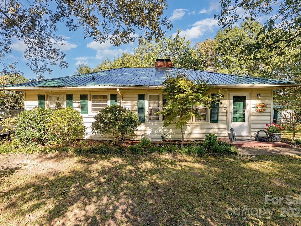 Welcome home to cozy one story living! Just a short distance from downtown Gastonia, this home is perfect for the modest lifestyle. The home features great curb appeal with flower beds, mature shade trees, a detached deck, a detached one car garage with wood burning fireplace and metal roof, a fenced in back yard, and an asphalt driveway. Outside also includes a 2025 year metal roof, painted shutters, a back porch for peaceful sitting. Inside you will find two spacious bedrooms, a bathroom that includes the washer and dryer, hardwood floors, renovated kitchen with stainless steel appliances, a dining area featuring lots of highly desirable natural light along with a wood burning fireplace. Spend your evenings relaxing in the living room around the gas log fireplace. This home has everything that should make you want to take a tour!