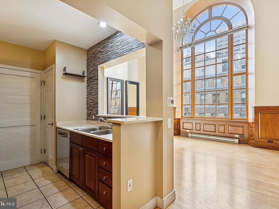 Welcome to The Phoenix – Where Historic Grandeur Meets Modern Luxury! This spectacular bi-level loft-style 1-bedroom, 1.5-bath residence in the iconic Phoenix building is truly one-of-a-kind. Soaring 15-foot ceilings and a stunning Palladian window flood the living space with natural light, while the grand coffered ceilings and irreplaceable historic woodwork offer architectural elegance rarely found today. The spacious living room features refinished hardwood floors and sophisticated upgrades, including stainless steel door hardware, designer lighting, and custom wall coverings. The kitchen boasts a sleek aluminum backsplash, updated appliances, granite countertops, and a convenient breakfast bar. The downstairs powder room has been thoughtfully updated with a new light fixture, mirror, and wallpaper for a refined touch. Upstairs, the loft-style bedroom overlooks the dramatic main living area and offers a luxurious retreat with a newly renovated ensuite bath—featuring custom tile work, an upgraded sink and medicine cabinet, and new shower fixtures. This condominum lives like a home, offering both intimacy and architectural drama. The Phoenix is a five-star amenity building with 24/7 concierge, state-of-the-art fitness center, media room, rooftop terrace with gas grills, conference room, and direct access to Suburban Station from the resident elevator. Enjoy a full-service restaurant right in the building. Located just steps from Dilworth Park, City Hall, The Barnes Foundation, the Philadelphia Museum of Art, and Walnut Street shopping. Effortless access to I-76, I-95, and all that Center City has to offer. This is not just a home—it’s a statement.