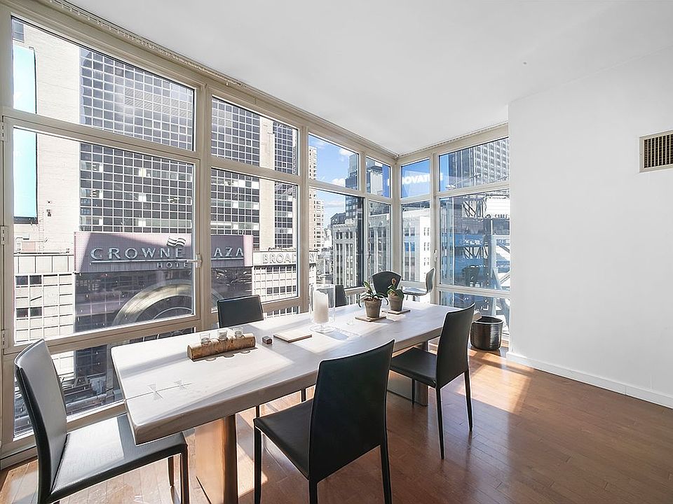 Take a peek at this noteworthy condominium unit available immediately and also fully furnished if needed in the highly sought after and acclaimed 1600 Broadway on The Square Building! The Square Building is one of the most celebrated white glove condominium buildings on Midtown West to live in. Perched on the tenth floor and positioned on the much-admired C-Line this exceptional condominium offers superb service, luxury and style! This airy and voluminous 2 bedroom/convertible 3 bedroom and 2 full baths, sprawls 1,329 square feet. Upon entering the rather gracious foyer you are immediately drawn to the high ceilings and floor to ceiling windows which feature attention-grabbing views of New York City. This property is sun-blasted all-day with natural sun light coupled with incredible urban views. Within the heart of the home relish in the open top-of-the line chef's kitchen showcasing granite counter tops, superior top of the line appliances including a Sub-Zero refrigerator/freezer, glass backsplash, Bosh dishwasher, Miele gas cooktops and Washer/Dryer in unit.. No need to worry about storage space because this property has plenty of it! This is the most picture-perfect and seamless kitchen to utilize for entertaining friends and guests. The master bedroom with western exposure is the perfect sanctuary and hideaway with a spa-like master bath including a deep soaking tub. Appreciate and experience the glass enclosed shower in addition to the enormous and well-equipped walk-in closet. The master bedroom is large and commodious and can effortlessly accommodate a king-sized bed. The secondary bedroom with western exposure is also expansive in size and scope. Further, it is spacious and roomy and can undoubtedly provide area for a queen-sized bed. There is an exceptional bonus that comes with owning this property! A third convertible bedroom. It can smoothly be used as an excellent study, office, and meditation room or art studio! The opportunities are endless! Some highlights worth mentioning when owning property at 1600 Broadway on The Square is that its's an Oasis in the heart of Times Square. The Square is a full-service condominium, featuring a 24-hour concierge and doorman, live-in super, rooftop terrace with panoramic views of Times Square, 24-hour gym, virtual golf room, conference center, entertainment lounge with wrap around terrace, and laundry room. Embrace serene living, while a stone's throw from The Theater District, 5th Ave shopping, Restaurant Row, Central Park, RadioCity, Rockefeller Center, Lincoln Center, and Carnegie Hall, with convenient access to transportation so you can venture out to other exciting areas in Manhattan! (1,2,3,N,Q,R,W,A,C,E trains) are all in short walking distance. 90% financing in the building is acceptable! Pets are welcome! Pied-a-Terres are approved! Contact us immediately for a private showing of the property, unit, amenities and location! Thank you.