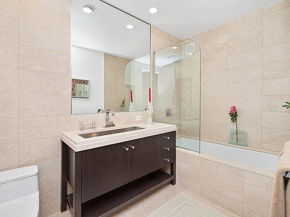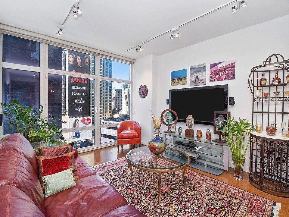 One-Bedroom in pristine condition available in 1600 Broadway, a world class full-service condominium. The home features an open kitchen with exquisite detailing and design, including granite countertops, full-height glass back splash, and Sub-Zero, Bosch and Miele appliances. WASHER and DRYER in the unit. Expansive windows facing south-west bring natural light. Immaculate hardwood floors surround the unit throughout. Just like the kitchen, the master bathroom has been designed with the finest materials and finishes: A wenge vanity, limestone countertop, custom-designed stainless steel basin and limestone walls and floors. One large closet in the foyer and another in the master bedroom provide ample storage space. Also available to be purchased fully furnished for the convenience of an investor buyer. This centrally located New York condo is the perfect pied-a-terre, investment or primary home.