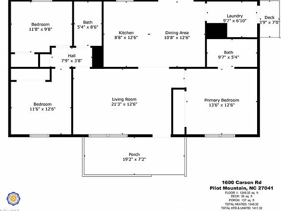 **Multiple Offers Received! Best Terms due by Tuesday 4/22/25 by 5pm** Welcome to your peaceful retreat in Pilot Mountain! This 3-bedroom, 2-bath home is nestled on a spacious lot surrounded by nature. Enjoy coffee on the covered front porch, and take in the wide open green space perfect for gardening or play. Inside, you’ll find fresh flooring throughout, modern finishes, and a bright, inviting living room. The layout offers cozy bedrooms, a dining area, and plenty of potential to make it your own. With serene wooded views and a private setting just minutes from town, this home offers the best of both worlds—quiet country living with easy access to amenities.