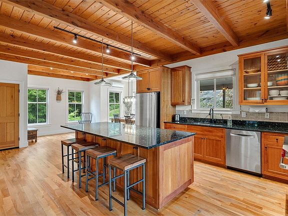Set in the highly sought-after Richmond community, this remarkable 9.7-acre property borders Cochran’s Ski Area. Beautiful home offering unmatched access to outdoor adventure while providing the comforts of a thoughtfully updated home. Step inside to a chef’s kitchen designed for both everyday living and entertaining, featuring refinished cherry cabinetry, sleek stone counters and backsplash, and a professional-grade Wolf range. Large windows throughout the home frame sweeping views of the surrounding landscape, while exposed wood beams, natural wood ceilings, and a soaring two-story fieldstone fireplace add timeless character and warmth. The finished lower level, with its own private entrance, provides versatile space ideal for a home office, fitness studio, or a private space for guests. Outdoor living is just as inviting, with multiple spaces designed to enjoy every season. Relax on the screened porch, gather on the covered porch, or soak up the sun on the deck. Beautifully landscaped grounds showcase a tranquil fountain, illuminated bluestone walkways, and lush plantings that transform the property into a private oasis by day or night. For the outdoor enthusiast, this property is a dream - step out your door to hike, mountain bike, or ski, or take a short drive to Bolton Valley or world-renowned Stowe Mountain Resort. This one-of-a-kind home offers the perfect balance of rustic charm and modern luxury, all in an exceptional location.