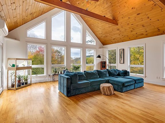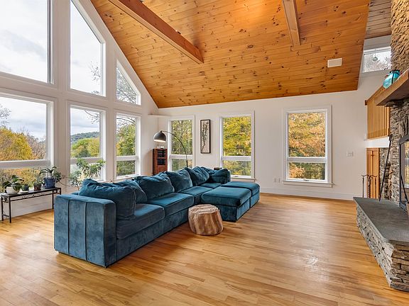 Beautiful & spacious contemporary home in the highly sought-after Richmond community! The open floor plan boasts vaulted ceilings & a magnificent two-story masonry fireplace in the living room. Large French doors invite the crisp mountain air into the home, while the professionally landscaped backyard, designed by Churchill, adds to the allure with stunning stonework adorning the property, complemented by vibrant perennial gardens, a screen porch, and the completion of a drainage project. Plus, the patio area is wired for a hot tub! The master bedroom features a generous walk-in closet & an updated bathroom with a picturesque window. The lower level is versatile, suitable for a home office or gym, with a separate entrance, wine cellar, & additional storage space. The home is adjacent to the Cochran ski area, surrounded by hundreds of undeveloped acres. Situated back from the road, it offers a private setting. A river trail across the road offers opportunities for relaxing beach days, hiking trails are directly accessible from the property, and mountain biking trails are conveniently located nearby, including a professionally completed jump trail on the property. For winter enthusiasts, Stowe's world-class skiing & snowboarding resorts are just 30 mins away. The location offers easy access to all quintessential VT activities, with I-89 mins away, Burlington & scenic Lake Champlain a mere 20 min drive from this exceptional home! Showings start 10/20. Open house 10/22 1-3pm.