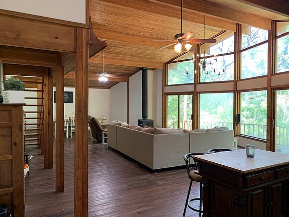 Beautiful Lindal Cedar Wood Cabin style home sitting on over 15 acres near the Ohoopee River! You'll have the best view of a lovely 3 acre spring fed pond that never goes dry!! This home has 3 bedrooms (including a loft), an office/possible 4th bedroom, and 2 bathrooms. The kitchen (22x14) opens into the living room (26x23) for a large open feel. Large windows and two sets of glass sliding doors open onto the deck and overlook the pond, allowing an abundance of natural light. The home has been wonderfully updated with fresh paint throughout, new wood look tile flooring throughout, new entry doors, new garage doors, newly renovated downstairs bath, new roof in 2016, and a new well pump and tank in 2018. An outdoor shed and raised bed garden area complete the property! Don't miss this wonderful opportunity for peaceful, country living!