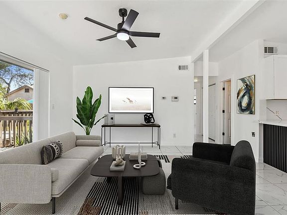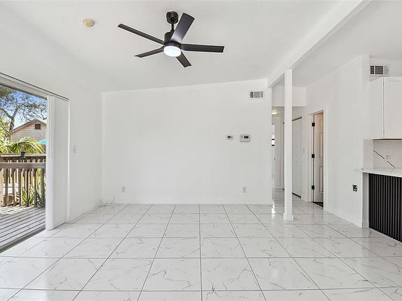 One or more photo(s) has been virtually staged. On a peaceful corner lot in Shore Acres, this updated 3-bedroom, 2-bath home offers a bright, inviting space that embodies relaxed Florida living. The single-story layout flows easily, featuring tile flooring throughout, a modern kitchen with stainless-steel appliances and shaker cabinetry, and sliding glass doors that open to a spacious deck and fenced yard perfect for outdoor gatherings or quiet mornings in the sun. The home has been refreshed after prior storm damage with cosmetic refresh that provides a modern update. A private suite off the kitchen adds flexibility for guests, a home office, or a cozy retreat tucked away from the main living area. Located close to downtown St. Petersburg, scenic parks, marinas, and the waterfront, offering a lifestyle that feels both convenient and quintessentially Florida. With its combination of thoughtful updates, ideal location, and laid-back style, it’s a space ready to enjoy from the moment you arrive.