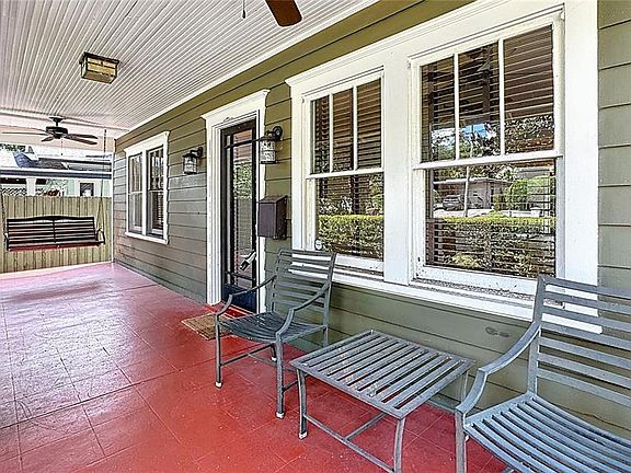 Imagine yourself living in this one-of-a-kind two-bedroom, two-bathroom bungalow minutes from vibrant Thornton Park and Lake Eola. Built in 1925 and renovated with meticulous attention to detail, you'll find beautiful original details, such as hardwood floors and plaster walls. The living room welcomes you with a wood-burning fireplace and hardwood floors that flow into the large dining room, perfect for both large and intimate meals. The spacious kitchen offers plenty of gleaming stainless steel countertop space for preparing gourmet meals and baking. The kitchen also includes a washer and dryer. Two sizeable bedrooms with ample closets, and two full bathrooms round out the interior space. In front, the covered porch spans the entire frontage and includes a porch swing. In the back, a raised deck, firepit, and expansive garden offer ample space for relaxation and outdoor entertaining. What are you waiting for?