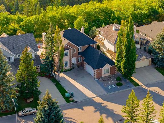 Welcome to your new, perfectly located home! These homes on the ridge don't come onto the market often so this is your chance to get into a home that is in one of the best locations in the estate area of Evergreen! Unmatched views, luxury, privacy, peace and quiet and a custom built home await you with an abundance of nature right outside your back yard! This home was carefully custom built by a European master craftsman and is offered for sale by the original owner. As you enter, you are greeted by soaring ceilings, generous sized entryway with a den/flex room at the front of the house and a dining room with a built in china cabinet on the other side of the entryway. As we make our way through the entry you have a formal dining room (could double as a den with glass doors for privacy) through to the main living areas you have a gorgeous living room with a fireplace, custom built ins and THREE skylights! The kitchen offers the best views to the west of the yard and Fish Creek, ample counter and cabinet space, gas cooktop, wall oven, corner pantry and tiled backsplash! The main floor is completed with a half bath, mud room with laundry and a sink and access to the MASSIVE double garage that can easily accommodate 3-4 vehicles (and it has heated flooring and a drain!) Let's make our way up the elegant curved staircase to the Primary suite that has a walk in closet, a double sided fireplace, dual sinks in the vanity, separate shower and tub with the most amazing views! (You will fall in love!) In addition to the primary bedroom there are THREE more bedrooms and two of them have ensuite bathrooms and there is also a full bathroom upstairs! The huge basement is awaiting your creative ideas and has plenty of room for future development! Other amazing features are the hail resistant upgraded shingles, the 1 year old massive deck, low maintenance yard (no grass), gas firepit in the back yard, custom woodwork throughout this home, heated floors in the basement and garage, 2 furnaces and 2 hot water tanks, Fish Creek and Mountain views and gleaming hardwood flooring on the main floor! You are also just minutes away from Stoney Trail, tons of the areas amenities, parks, playgrounds and schools! This home offers the perfect blend of luxury custom built finishes, functional upgrades and an unbeatable location! Whether you enjoying a quiet morning coffee with park views, hosting a summer BBQ by the firepit or warming up by one of the fireplaces - this property is thoughtfully designed for comfort, style and a wonderful home to raise your family in!