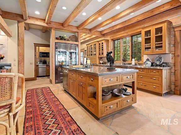Discover unparalleled timeless luxury in this exceptional hand-hewn log Payette lakefront home, nestled on the last lot of a serene dead-end street just moments from downtown McCall, Idaho. Featuring 110' of private lake frontage and boasting breathtaking sunset views and a private dock, this estate offers the ultimate lakeside retreat. The grand interior features radiant heated sandstone flooring, soaring vaulted ceilings, custom metalwork, and multiple fireplaces, creating an inviting atmosphere. The chef's kitchen is a culinary dream, while the expansive master suite ensures comfort and privacy. Experience refined living with a lock-off guest suite, pantry, and office. The walk-out basement features ample storage, including a wine room and cedar-lined closet, as well as a full bath and convenient lake/hot tub access. Enjoy a short walk or bike ride to downtown dining & Ponderosa Park. Unwind by the lakeside fireplace & experience the pinnacle of elegance and tranquility in this exclusive lakefront haven.