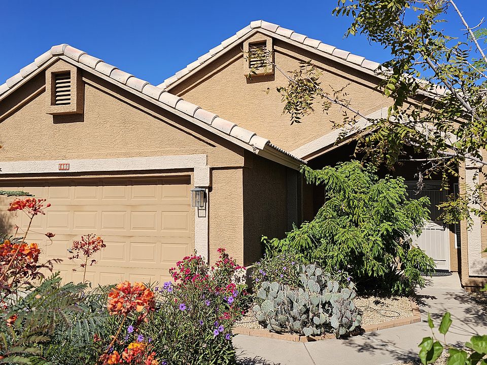 Step outside to your private, low-maintenance backyard with a covered patio, ideal for enjoying Arizona's beautiful evenings. The backyard backs to the Ashley Trail for added privacy. This home features a 2-car attached garage and a newer, high-efficiency A/C unit to keep you cool all summer. A water softener and reverse osmosis water filtration system are also present.