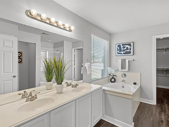 This inviting two-story home sits on a spacious corner lot in a quiet cul-de-sac, offering both privacy and room to enjoy the outdoors. The backyard is a true retreat—perfect for play, gatherings, or simply relaxing under the covered porch. Inside, the kitchen features stainless steel appliances and a farmhouse sink, opening seamlessly to the cozy family room with a gas fireplace—an ideal setting for everyday living or entertaining. The oversized primary suite on the main level provides a private escape with a walk-in closet, dual sinks, a soaking tub, and a separate shower. Upstairs, a versatile flex space provides the perfect setting for a second living area, game room, or media space, giving you even more options to fit your lifestyle. With five bedrooms, two living areas, and two dining spaces, this home offers incredible flexibility for family, guests, or a home office. Three and a half bathrooms are thoughtfully located throughout the home for convenience and comfort. Recent updates include freshly painted interiors and new carpet on the stairs and second floor, giving the home a clean, modern feel. A two-car garage provides ample storage and parking, while the large backyard extends your living space outdoors. Located within walking distance to Knowles Elementary, Running Brushy Middle School, and Leander High School, this home is also close to shopping, highways, a community pool, and neighborhood parks. Combining comfort, convenience, and a welcoming community atmosphere, this home is ready for its next chapter.