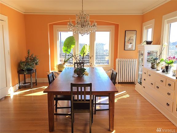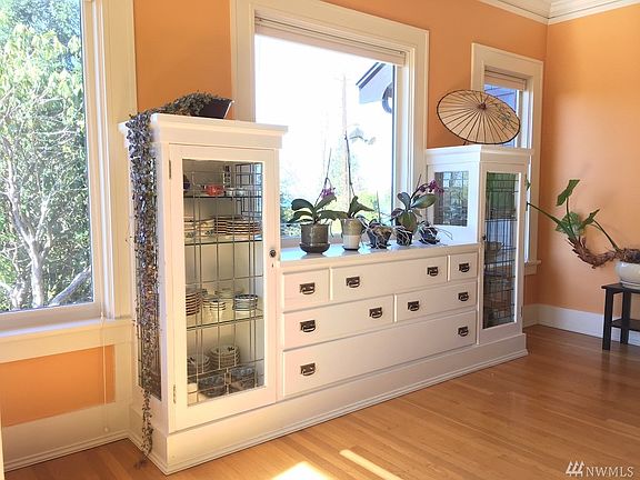 Fabulous location! Walk to Fairhaven. Expansive mountain & bay views. 1914 Craftsman designed by renowned architect F. Stanley Piper as family home. Original crystal chandelier, wood floors, built-in cabinets, bookcases & window seats. Master on main. Spacious kitchen/sunroom. Large, clean, daylight basement. South facing, private back yard, deer fenced organic garden & deck. New: paint, boiler, heat pump,fireplace insert,insulation,heat pump water heater & 35 solar panels! B'ham dream home!