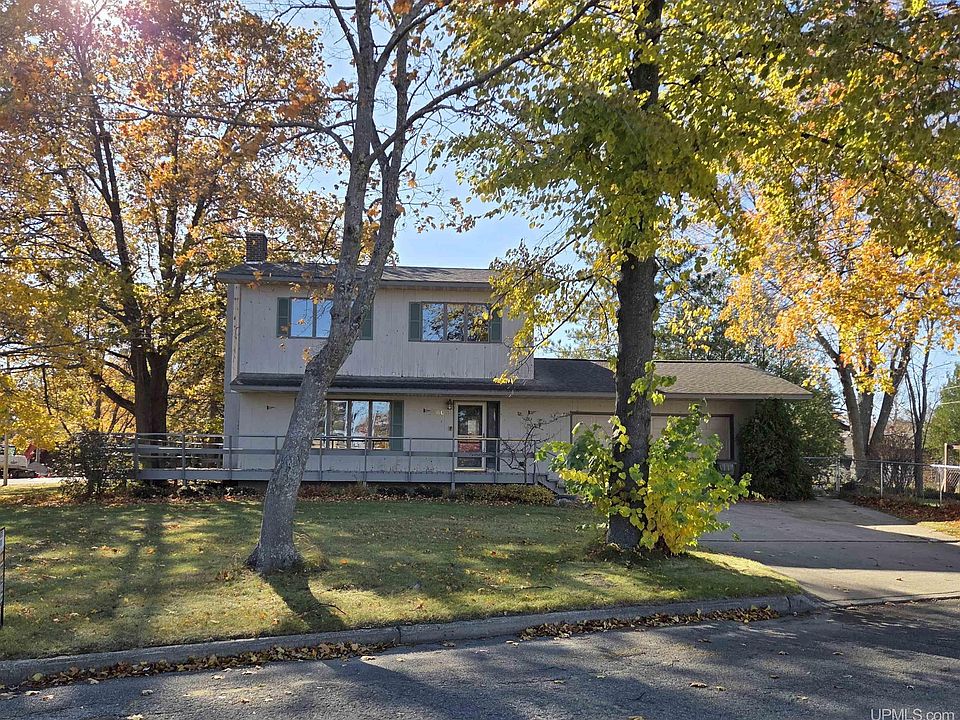 Great home on large lot on Lake Shore Drive in Escanaba. Many recent updates include new boiler, garage door, patio door to beautiful deck. Mostly all new flooring. Has a finished basement with family room, full bath, non-conforming bedroom and a sauna.