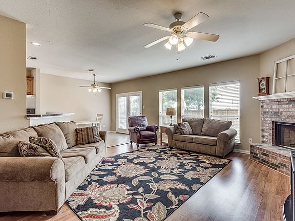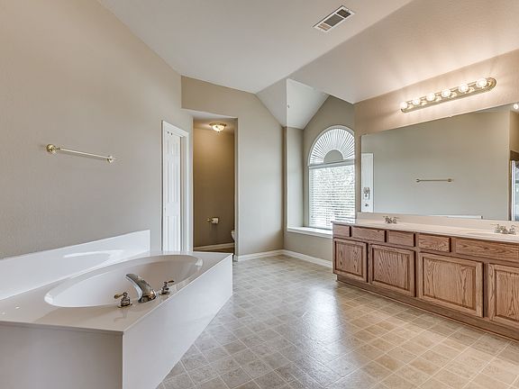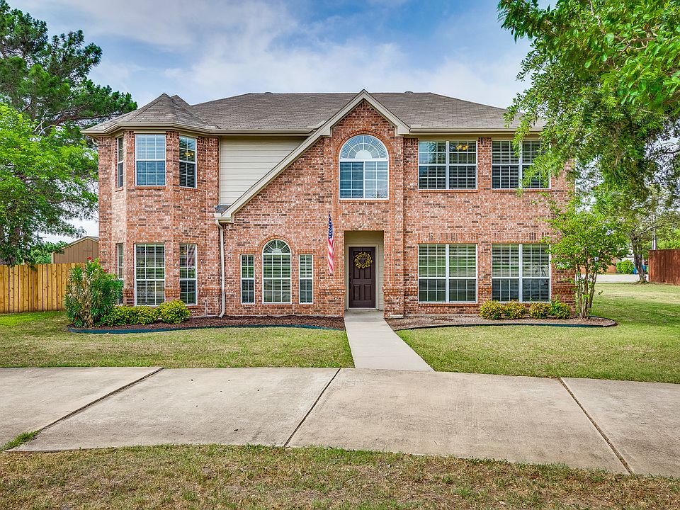 Quality 5 bedroom rests in desired Flower Mound. A circle drive lined with mature trees welcomes you home. Step into your bright entryway to your open layout. A formal living space flows to a dining room with easy access to your kitchen and bay window views. Decorative lighting and elegant, detailed wall molding light up the room! Your spacious kitchen offers ample cabinet & counter space and a dining nook with a backyard view. Cozy up to the wood burning fireplace in your sizable living space. Generous layout also offers a media room, additional bedrooms for friends & family and a vast backyard with room to grill, rolling grass and large shady trees framed by a NEW cedar fence. Come fall in love for yourself!