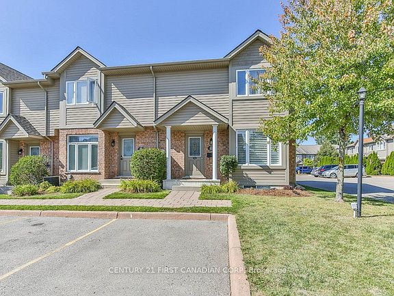 Welcome to this bright and spacious end unit located in a highly sought after Northwest London neighbourhood. Featuring 3 bedrooms and 1.5 bathrooms, this home offers comfort, functionality, and plenty of natural light. The main floor boasts an open concept kitchen/dining area with California shutters, and a cosy living room with patio doors leading to a private deck overlooking trees and green space. Upstairs, you'll find three generously sized bedrooms and a four-piece bathroom, including a large primary suite with ample closet space. The lower level offers a large rec room, additional storage, and a newer washer and dryer set. Parking is convenient with two spaces right at the door. All six appliances are included, making this a truly move-in ready home.