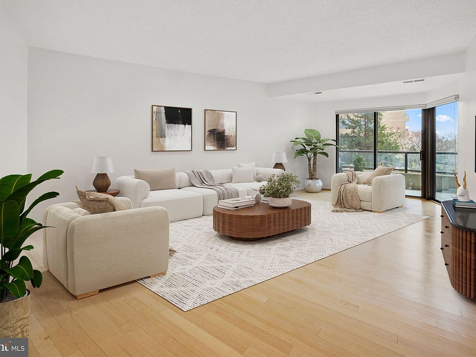 Welcome to Unit 109 at the prestigious Belvedere Condominiums—a stunning, move-in-ready 800-square-foot condo that combines modern upgrades with an unbeatable location in the heart of Rosslyn. This beautifully updated one-bedroom, one-bathroom condo features Pergo flooring throughout, an efficient new heating and cooling system, a recently updated kitchen with sleek granite countertops, and a spacious bedroom with two generous closets, including a walk-in closet for ample storage. Both the living room and bedroom are bathed in natural light, thanks to their south-facing windows which double as patio doors. These doors provide seamless access to a large private outdoor space—perfect for both a seating area and outdoor dining. The condo also offers a separately deeded and secure garage parking space, an in-unit laundry closet, and a large private storage unit located just across the hall. The Belvedere offers an exceptional amenity package, including a 24/7 concierge desk, indoor garage with visitor and long-term guest parking, indoor car wash bays, a well-equipped gym with free weights, resistance training, and cardio equipment, a yoga room, dry saunas, a pool, tennis and pickleball courts, a barbecue area on the deck, a party room, a library and work center, and an onsite convenience store. The property is pet-friendly, adding to its welcoming community atmosphere. The location is second to none—close to the Rosslyn Metro, adjacent to two parks with easy access to running and biking trails, and just steps from a variety of fast-casual restaurants. Essential shopping destinations like Target, Starbucks, Safeway, Trader Joe's, and Whole Foods are all nearby, with convenient access to D.C. and major highways. The condo fee includes water and sewer services, trash pickup, and hot water supplied from a central boiler with a central water softener. Owners are responsible for electricity, internet, phone, and TV (Starry, Comcast, Verizon FiOS with gigabit fiber service available). Experience the best condo living in a vibrant community with everything you need nearby!