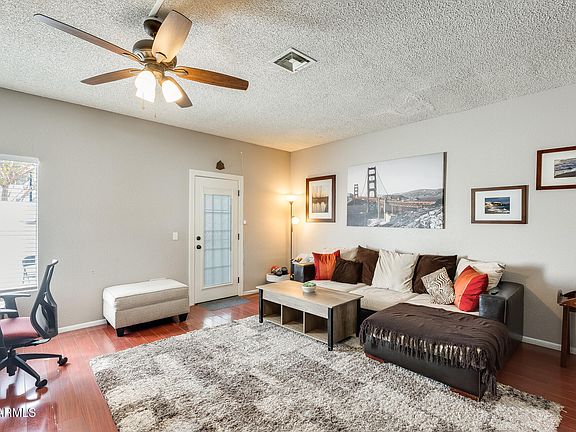 Nestled in a welcoming community, this timeless 2-bedroom, 1.5-bath, end-unit townhome is ideal for a primary residence or an investment opportunity. The spacious great room with a vaulted ceiling offers a bright and airy atmosphere, while the remodeled kitchen boasts beautiful espresso cabinetry and granite countertops. Throughout the home, there is easy-maintenance flooring, including laminate downstairs and newer Luxury Vinyl Plank flooring on the staircase and upper level. Upstairs, the bedrooms are amply sized and the primary bedroom has a full ensuite bathroom. The exterior features a private patio and extra storage space, while the carport ensures convenient parking. The home has also been upgraded with an American Standard 3 phase A/C unit (3 yrs), ensuring energy efficiency. Enjoy the community amenities, including a refreshing pool and a community park right across the street from the home!