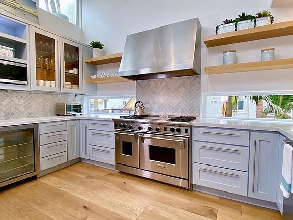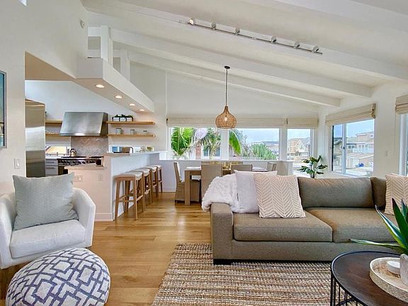 Discover the epitome of seaside luxury with this exquisite Silver Strand beach house, just steps from the sand. Three bedrooms, including a king-sized and two queen-sized beds, this tri-level oasis spans nearly 2,100 square feet. Immerse yourself in the coastal lifestyle with an impressive rooftop lounge perfect for watching the sunset over the ocean. Every detail within this dwelling is carefully curated, featuring designer furniture that complements the house's aesthetic perfectly. The open floor plan is a masterpiece of design, radiating a beachy-chic ambiance through a neutral color palette. Situated just steps from the flawless Silver Strand beach and adjacent to a sand volleyball court, this home offers breathtaking views of the ocean at sunrise and sunset. Indulge in a variety of coastal activities, such as surfing, fishing, kayaking, swimming, boogie boarding, jet skiing, and leisurely beach walks. Explore the charming town, complete with coastal bike paths, nearby restaurants, hotels, and attractions at the Channel Islands Harbor. Completely renovated in 2018 and a thoughtful refurnishing in 2020. Built in 1981, this 2,085 square foot home spans multiple levels. The lower level comprises two bedrooms, one bath, a den with a pull-out queen sofa bed, and an expansive side yard with an outdoor shower. Ascend to the upper level to find a spacious living room with a queen-sized pullout sofa, a chef's dream kitchen with Wolf appliances, a Sub-Zero refrigerator, custom shelving, beautiful shaker cabinets, and Carrera marble counters. The warm and inviting primary bedroom, also on the second level, features woven light wood blinds, a ceiling fan, and a luxurious private en-suite bath with an impressive tiled shower, dual sinks, and custom built-ins. The primary bedroom opens onto an extravagant rooftop deck with stunning ocean views, multiple seating and dining areas, and a firepit, making it the perfect spot to unwind and relish in the coastal beauty.