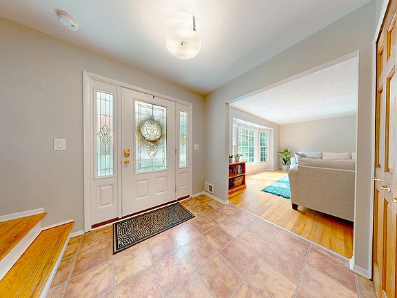 Welcome to this beautifully maintained home in the desirable New England Village subdivision, just minutes from Downtown Plymouth. Curb appeal shines with mature trees, newer siding, a bay window, and a leaded glass front door. Inside, the updated kitchen with stainless steel appliances opens to a bright breakfast nook and family room with a cozy gas fireplace. Hardwood floors and fresh neutral paint make it move-in ready. Upstairs, find two stunning renovated baths. The expanded primary features a cultured marble vanity and sleek shower, while the second bath offers double sinks and a tub/shower combo. Enjoy a private fenced backyard with brick paver patio, built-in fire pit, and natural gas grill. The partially finished basement provides flexible space for hobbies and storage. Major updates include new furnace/AC (Sept 2025), tear-off roof (2019), newer water heater, and concrete drive. Convenient to parks, schools, USA Hockey, and expressways makes this home a MUST-SEE!
