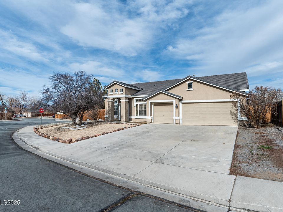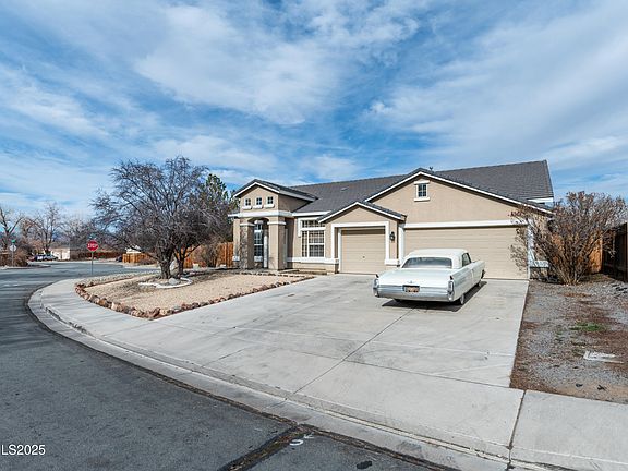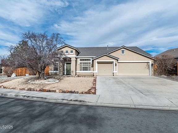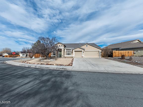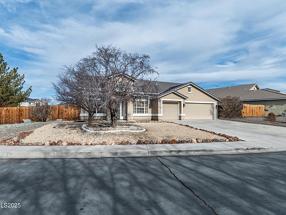 Discover the epitome of comfort and style in this remarkable single-story stucco home on an oversized corner lot with RV parking that can be seamlessly added. A true gem nestled within the vibrant and booming community of Fernley, Nevada. This property is a haven for those seeking a blend of elegance and practicality, featuring 3 generously-sized bedrooms, PLUS a separate office/den, and an array of amenities that cater to a luxurious lifestyle., Step inside to be greeted by an open floor plan bathed in natural light, designed to foster a warm and inviting atmosphere.The heart of this home, the kitchen, is a culinary enthusiast's dream with its sprawling island, cozy breakfast nook, inviting breakfast bar, spacious pantry, and new appliances that promise to inspire delightful dining experiences. Entertainment and relaxation are a breeze with separate living, family, and dining rooms, each boasting high ceilings that add an air of sophistication. The elegant dining room's recessed ceilings set the stage for memorable meals with loved ones. A cozy gas log fireplace adds a touch of warmth and ambiance to any gathering. Privacy and tranquility abound, thanks to mature shade trees that adorn the front and back yard. The covered patio is perfect for enjoying the serene outdoors. Inside, the primary bedroom is a sanctuary of its own with double sinks, a garden soaking tub, walk-in shower, and a spacious walk-in closet, not to mention its own private entrance to the backyard. Convenience is at your fingertips with ample parking for three vehicles, easy access to Ponderosa Park, shopping destinations, and freeway travel. All this and more, with the added benefit of no HOA, ensuring that your home is truly your own. This well-maintained property is more than just a house—it's the foundation for your future. Welcome to your new haven, where every detail is crafted for your comfort and enjoyment.